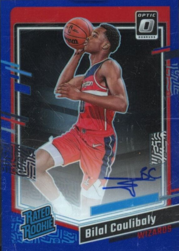 Bilal Coulibaly 2023 Panini Donruss Optic Rated Rookie Blue Auto /49 Wizards