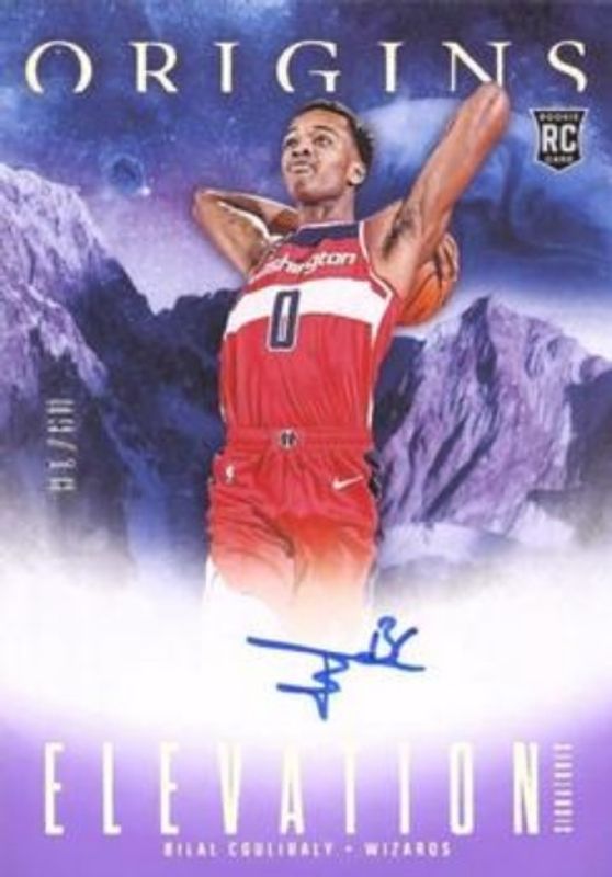 The Bilal Coulibaly 2023 Origins #ES-BCW Elevation Signatures - Purple FOTL /18 Rookie card is 1 of 68 Bilal Coulibaly's card variations in the 2023 Origins set being tracked by Sports Card Investor, including #70 Base, #70b Base, #70 Basketballs, #70 Cosmos, and #70 Photo Variation.