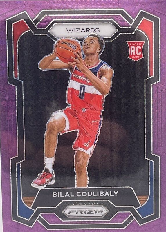 The Bilal Coulibaly 2023 Prizm #153 Fast Break Purple /75 Rookie card in Raw condition has not changed in price in the last 30 days and was last sold for $30.76 .