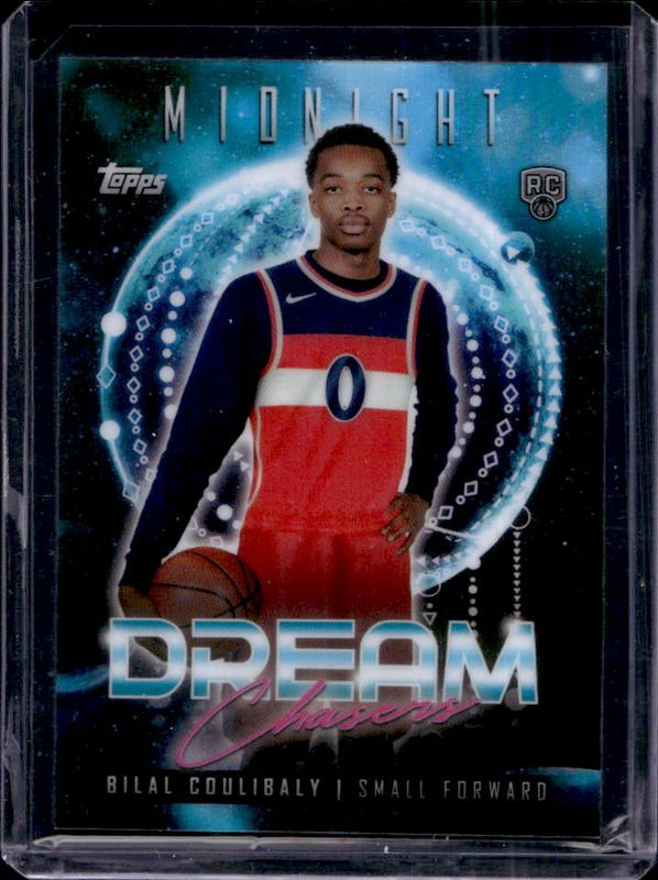 The Bilal Coulibaly 2023 Topps Midnight #DC-15 Dream Chasers Rookie card is 1 of 38 Bilal Coulibaly's card variations in the 2023 Topps Midnight set being tracked by Sports Card Investor, including Base, Moon Beam, Zodiac, Morning /149, and Twilight /99.
