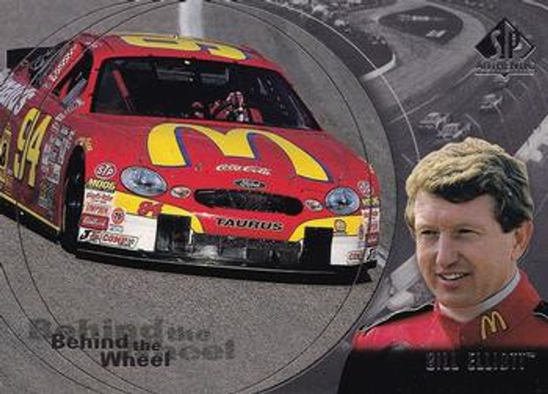 The Bill Elliott 1998 SP Authentic #BW7 Behind the Wheel card is 1 of 6 Bill Elliott's card variations in the 1998 SP Authentic set being tracked by Sports Card Investor, including #15 Base, #49 Base, #71 Base, #BW7 Behind the Wheel - Gold, and #BW7 Behind the Wheel Die-Cut /100.