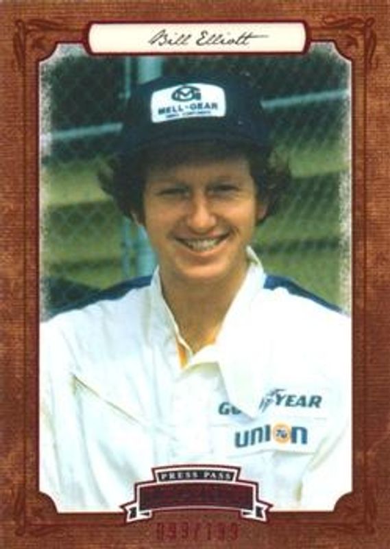 The Bill Elliott 2010 Press Pass Legends #12 Red /199 card is 1 of 41 Bill Elliott's card variations in the 2010 Press Pass Legends set being tracked by Sports Card Investor, including Base, Gold /399, Holofoil /50, eBay Previews /5, and Press Plates Black /1.