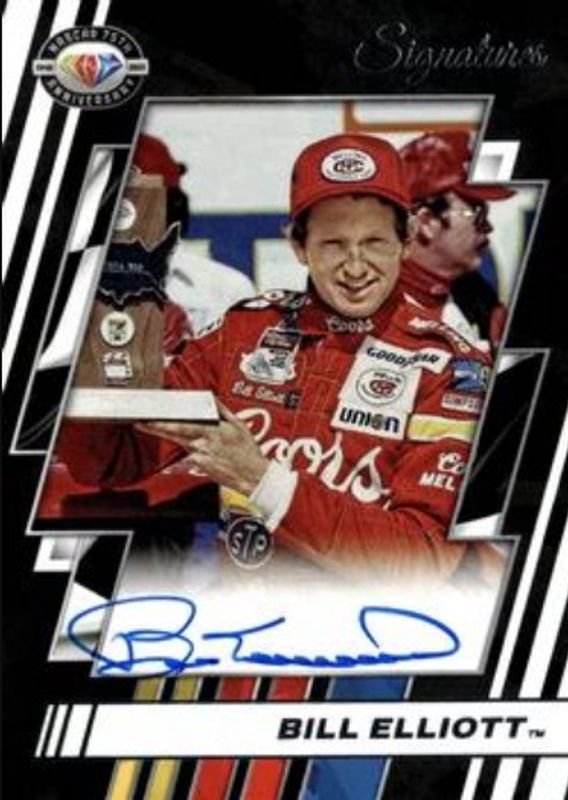 Bill Elliott 2024 Donruss NASCAR #75-BE NASCAR 75th Anniversary Signatures RAW Price Guide