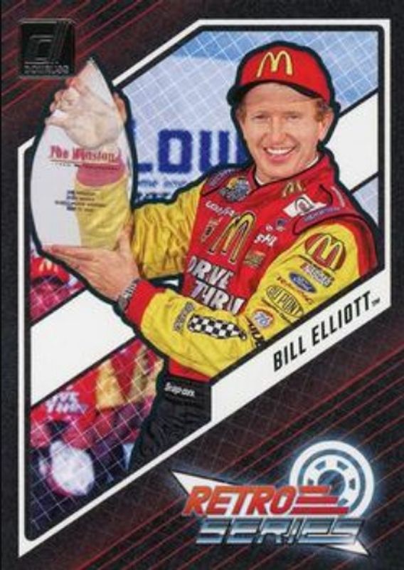 The Bill Elliott 2024 Donruss NASCAR #6 Retro Series card is 1 of 99 Bill Elliott's card variations in the 2024 Donruss NASCAR set being tracked by Sports Card Investor, including #66 Base, #125 Base, #125 Optic, #66 Optic, and #125 Optic Black Pandora.