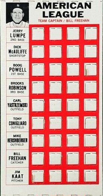 Other popular players in the 1967 Topps Punch-Outs set include Al Kaline, Andy Etchebarren, Bill Mazeroski, Bill White, and Billy Williams.