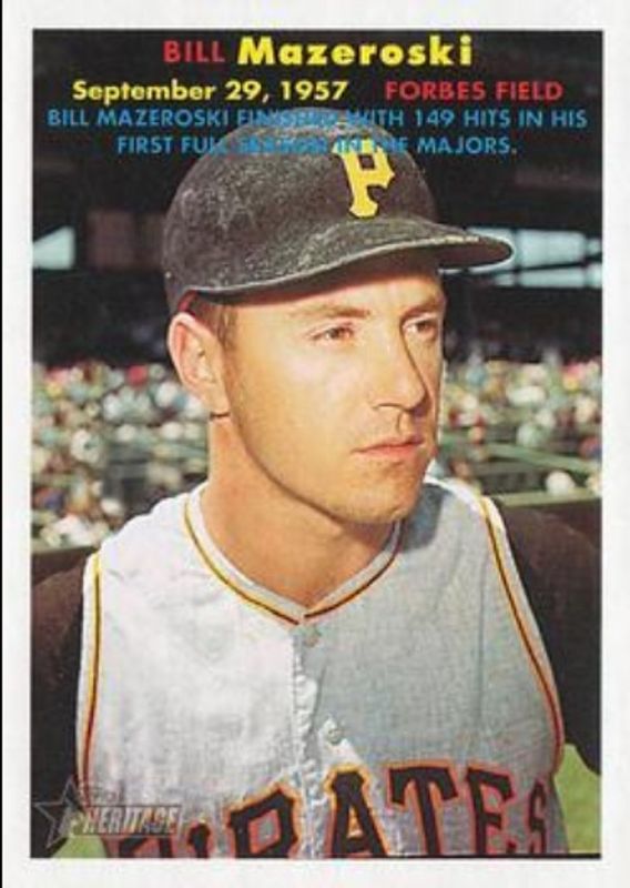 The Bill Mazeroski 2006 Topps Heritage #FB-BM Flashbacks card is 1 of 4 Bill Mazeroski's card variations in the 2006 Topps Heritage set being tracked by Sports Card Investor, including Clubhouse Collection Relics, Flashbacks Seat Relics, and Clubhouse Collection Autographs Relics /25.