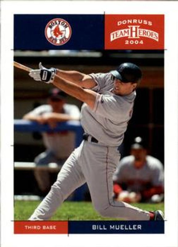 The Bill Mueller 2004 Donruss Team Heroes #57 Base card is 1 of 4 Bill Mueller's card variations in the 2004 Donruss Team Heroes set being tracked by Sports Card Investor, including Showdown - Bronze /150, Showdown - Silver /50, and Showdown - Gold /10.