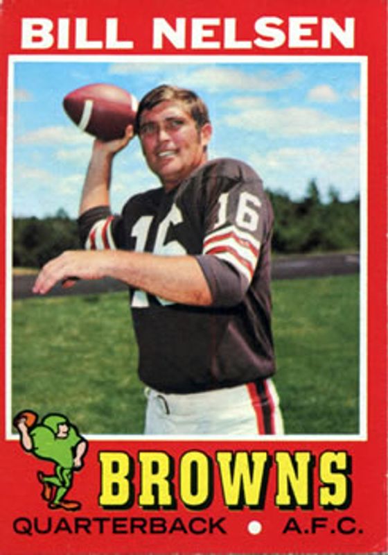 The Bill Nelsen 1971 Topps #220 Base card is 1 of 4 Bill Nelsen's card variations in the 1971 Topps set being tracked by Sports Card Investor, including Game Inserts, Posters, and Posters - Glossy.