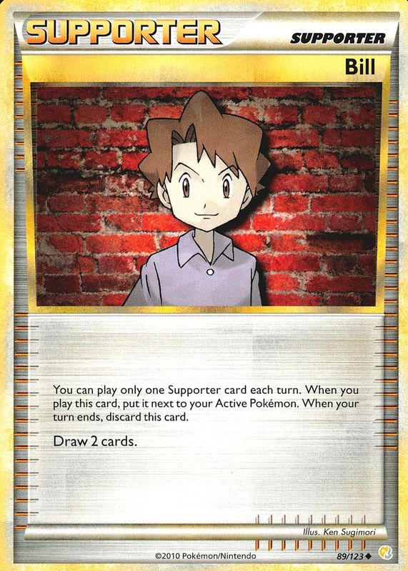The Bill 2010 HeartGold & SoulSilver #089/123 Base card in Raw TCG (Lightly Played) condition has not changed in price in the last 30 days and was last sold for $1.48 .