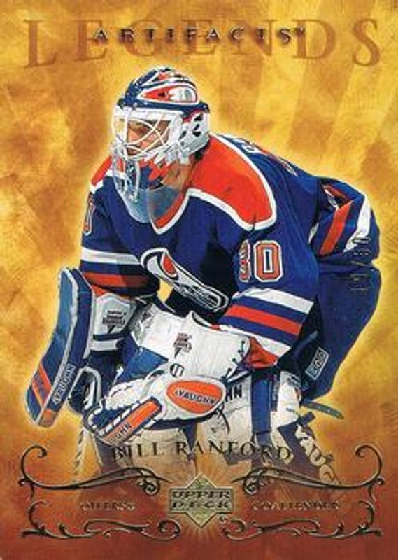 The Bill Ranford 2006 Upper Deck Artifacts #131 Gold /50 card is 1 of 17 Bill Ranford's card variations in the 2006 Upper Deck Artifacts set being tracked by Sports Card Investor, including Base /999, Silver /100, Bronze /25, Platinum /10, and Radiance /1.