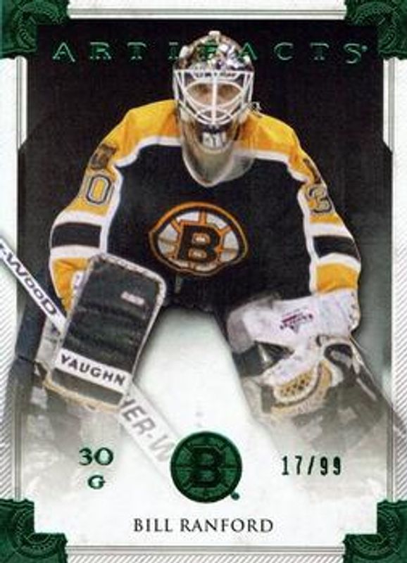 The Bill Ranford 2013 Upper Deck Artifacts #102 Emerald /99 card is 1 of 10 Bill Ranford's card variations in the 2013 Upper Deck Artifacts set being tracked by Sports Card Investor, including Base /899, Ruby /299, Sapphire /85, Spectrum /25, and Black /5.