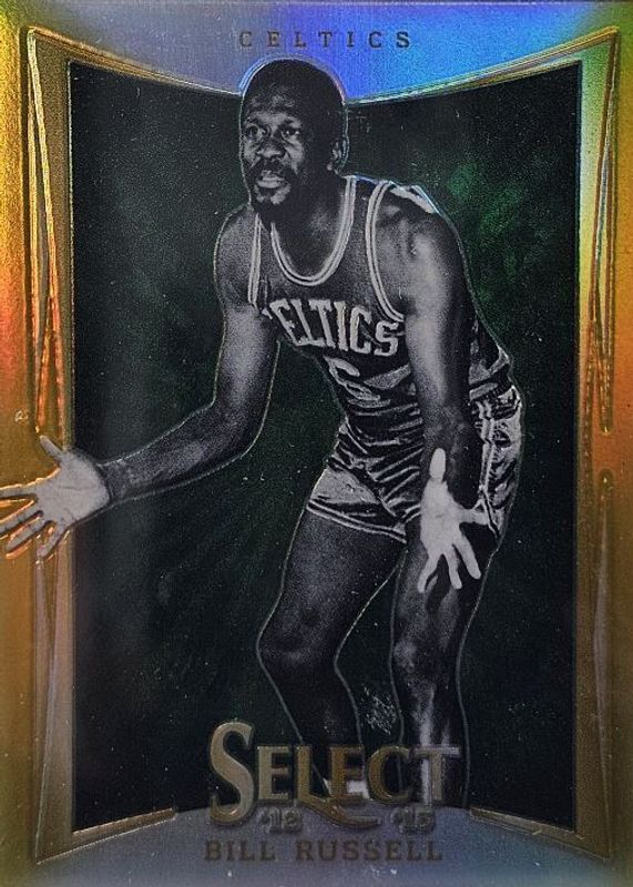 This card is 1 of 7 Bill Russell's card variations in the 2012 Select set being tracked by Sports Card Investor, including Base, Silver, Green /10, Black /1, and Hall Selections.