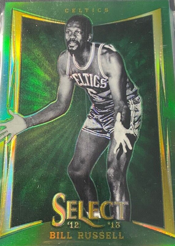 This card is 1 of 7 Bill Russell's card variations in the 2012 Select set being tracked by Sports Card Investor, including Base, Silver, Gold /10, Black /1, and Hall Selections.