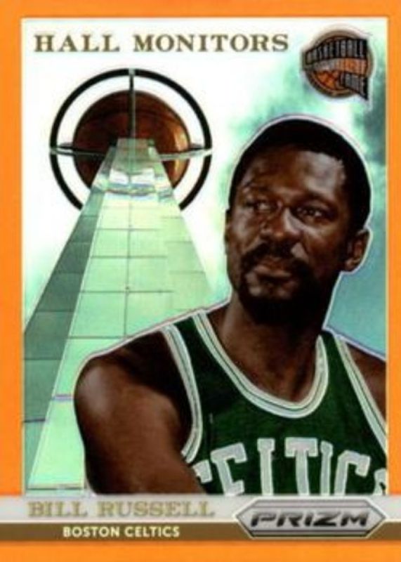 The Bill Russell 2013 Prizm #3 Hall Monitors - Orange /60 card is 1 of 32 Bill Russell's card variations in the 2013 Prizm set being tracked by Sports Card Investor, including Base, Blue, Green, Red, and Red White Blue Mosaic.