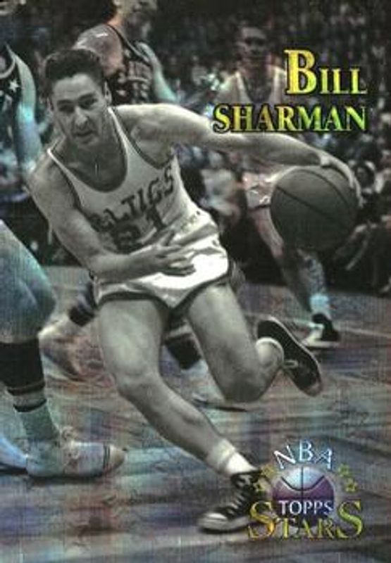 The Bill Sharman 1996 Topps Stars #42 Finest Atomic Refractor card is 1 of 17 Bill Sharman's card variations in the 1996 Topps Stars set being tracked by Sports Card Investor, including #42 Base, #92 Base, #142 Base, #142 Finest, and #42 Finest.