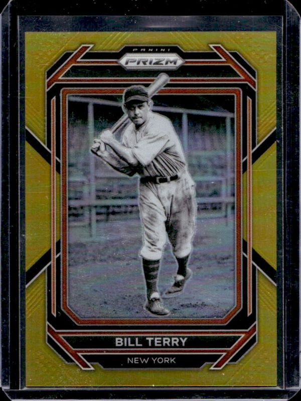 The Bill Terry 2023 Prizm #185 Gold /10 card is 1 of 25 Bill Terry's card variations in the 2023 Prizm set being tracked by Sports Card Investor, including Base, Blue Ice, Giraffe, Green Ice, and Hyper.