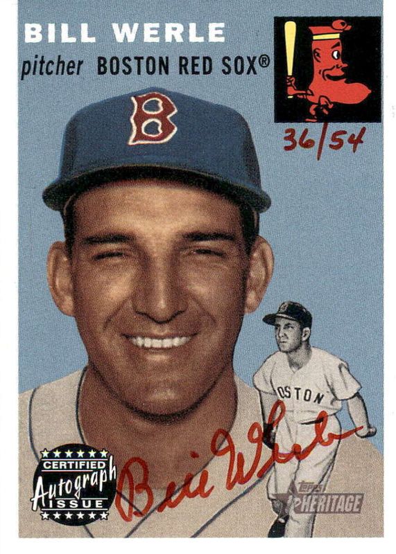 The Bill Werle 2003 Topps Heritage #RO-BWE Real One Autographs - Red Ink /54 card in Raw condition has not changed in price in the last 30 days and was last sold for $50.00 .