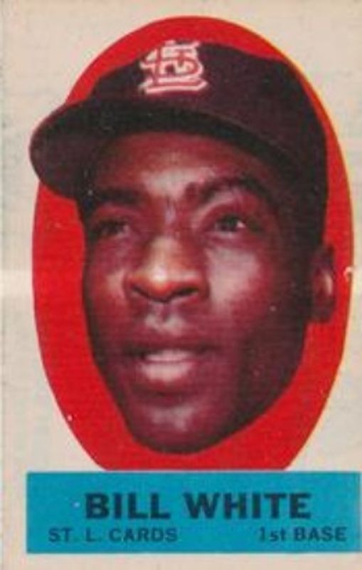 The Bill White 1963 Topps #NNO Peel-Offs card is 1 of 2 Bill White's card variations in the 1963 Topps set being tracked by Sports Card Investor, including Base.
