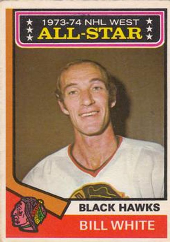 The Bill White 1974 O-Pee-Chee NHL #136 Base card is 1 of 2 Bill White's card variations in the 1974 O-Pee-Chee NHL set being tracked by Sports Card Investor, including Base.
