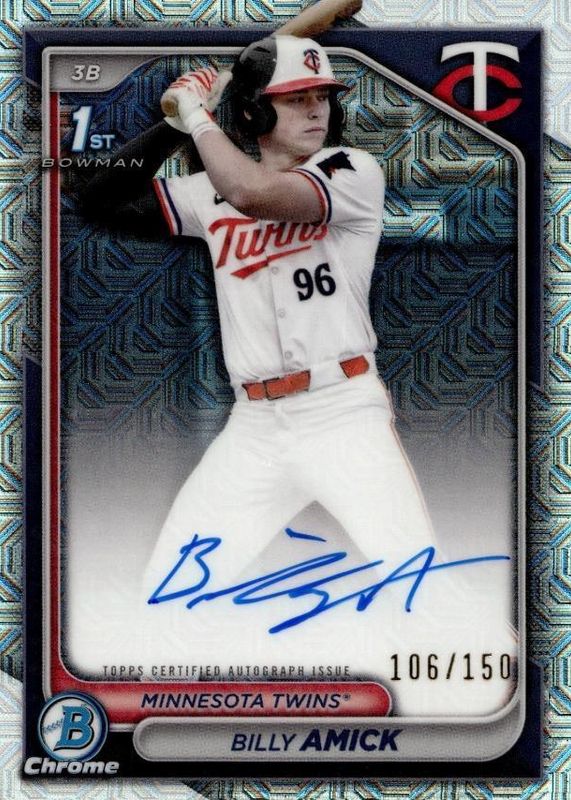 Billy Amick 2024 Bowman Chrome Draft 1ST Choice HTA Auto /150 CPA-BA Twins