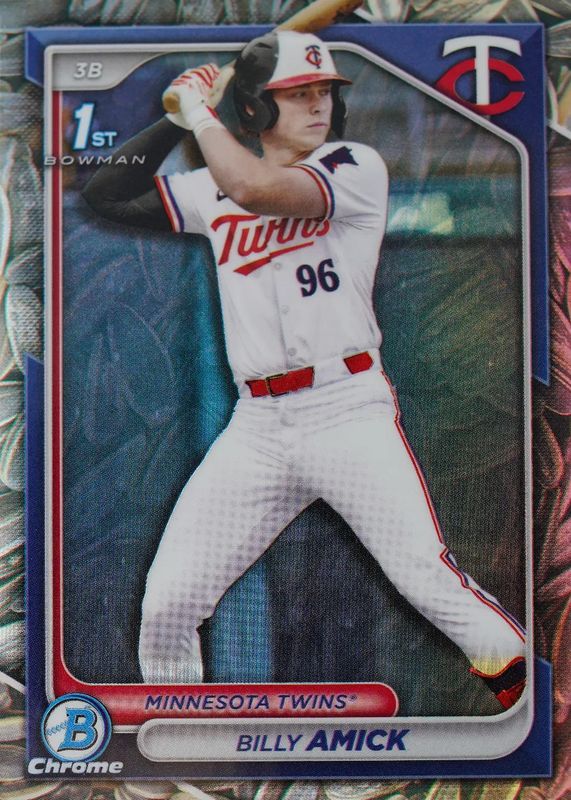 This card is 1 of 50 Billy Amick's card variations in the 2024 Bowman Draft set being tracked by Sports Card Investor, including Chrome (1st), Chrome - Bubble Gum (1st), Chrome - Lunar Glow Refractor (1st), Chrome - Peanuts (1st), and Chrome - Pearl Refractor (1st).