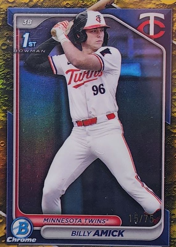 BILLY AMICK 2024 BOWMAN CHROME DRAFT 1ST YELLOW LUNAR TWINS /75 Q4054