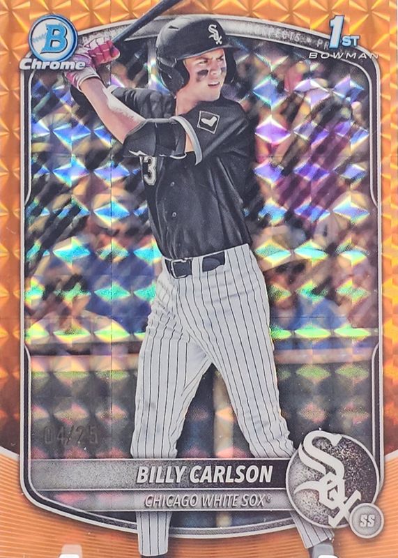 Billy Carlson 2025 Bowman Draft #BDC-10 Chrome - Orange Geometric Refractor /25 (1st) BGS 9 Price Guide