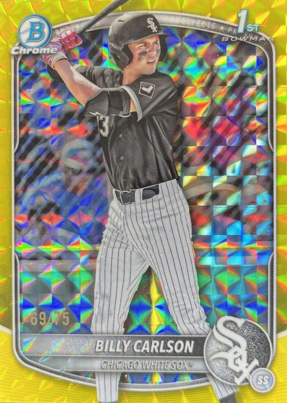 BILLY CARLSON 2025 Bowman Draft Chrome 1st YELLOW GEOMETRIC /75 White Sox BDC-10