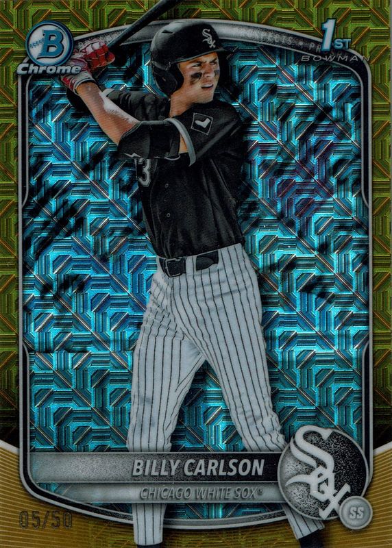 Billy Carlson 2025 Bowman Draft #BDC-10 Gold Mojo Refractor Chrome 1st RC /50