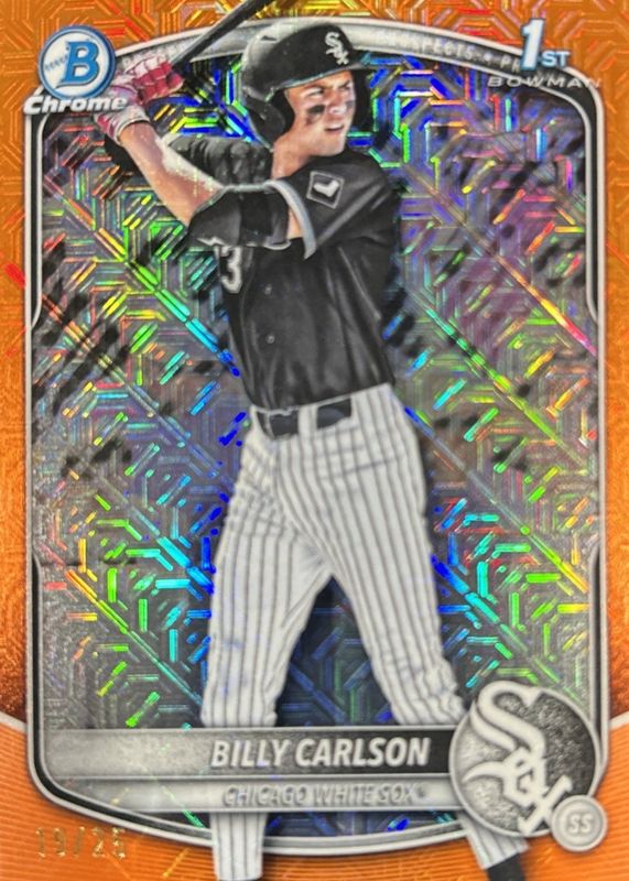 Best Prices Available For Sale of Billy Carlson 2025 Bowman Draft Mega Box #BDC-10 Chrome - Orange Mega Refractor /25 (1st)
