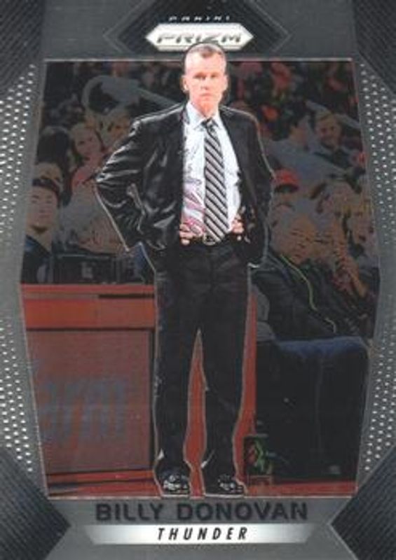The Billy Donovan 2017 Prizm #270 Base card is 1 of 26 Billy Donovan's card variations in the 2017 Prizm set being tracked by Sports Card Investor, including Fast Break, Green, Hyper, Red White Blue, and Ruby Wave.