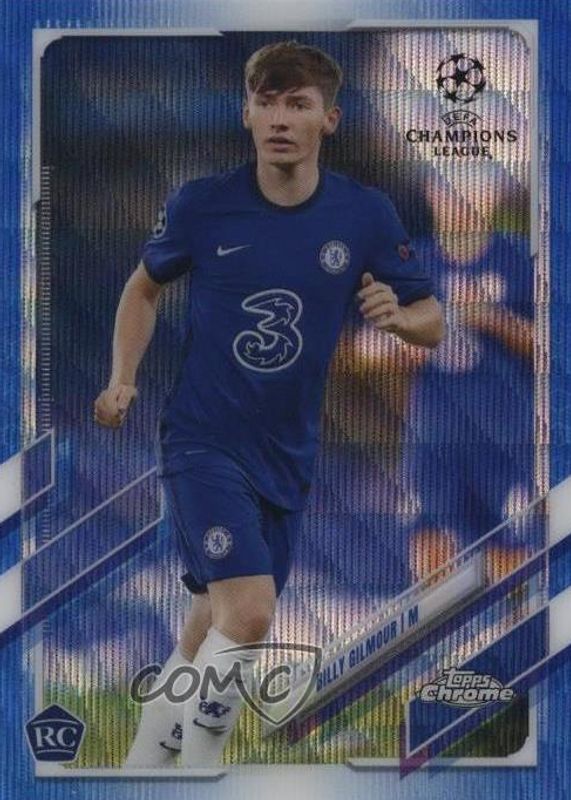 Billy Gilmour 2020 Topps Chrome UEFA Champions League #66 Blue Wave Refractor /75 Rookie RAW Price Guide
