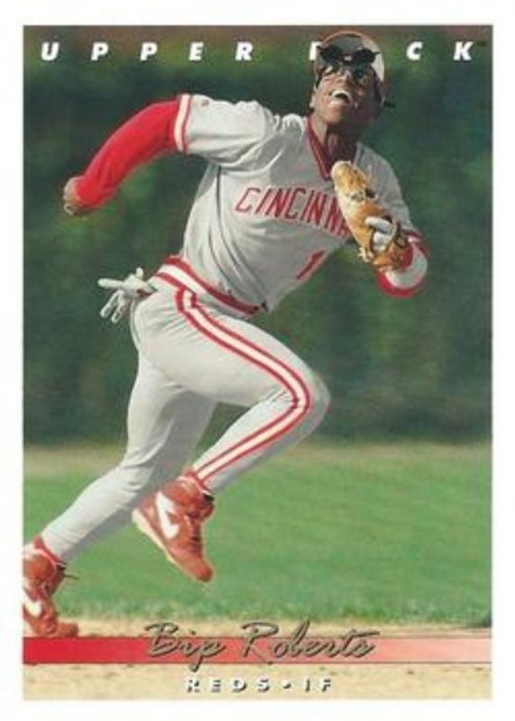 The Bip Roberts 1993 Upper Deck #112 Base card is 1 of 3 Bip Roberts' card variations in the 1993 Upper Deck set being tracked by Sports Card Investor, including Gold Hologram, and Season Highlights.