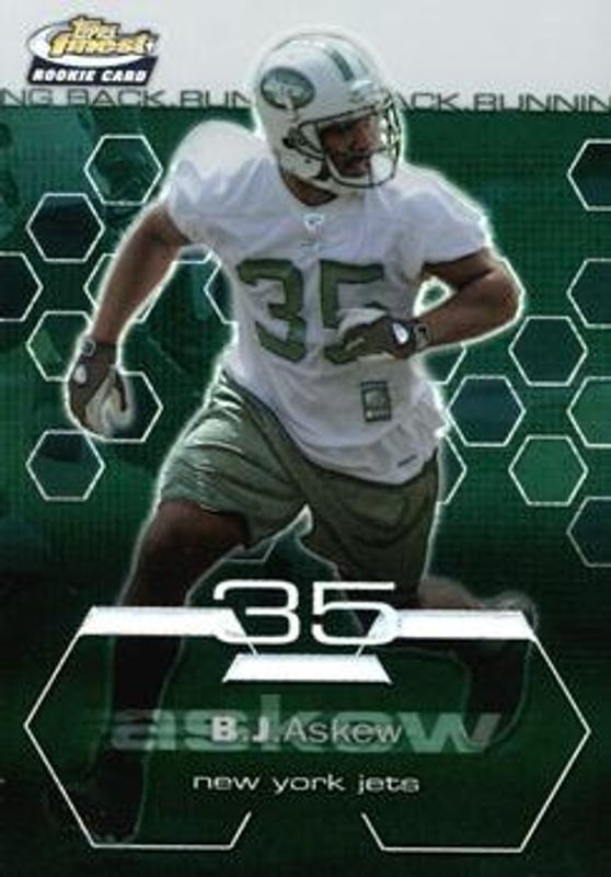 The BJ Askew 2003 Topps Finest #76 Refractors /199 Rookie card is 1 of 4 BJ Askew's card variations in the 2003 Topps Finest set being tracked by Sports Card Investor, including Base, Gold Refractor /50, and Gold Xfractor /50.