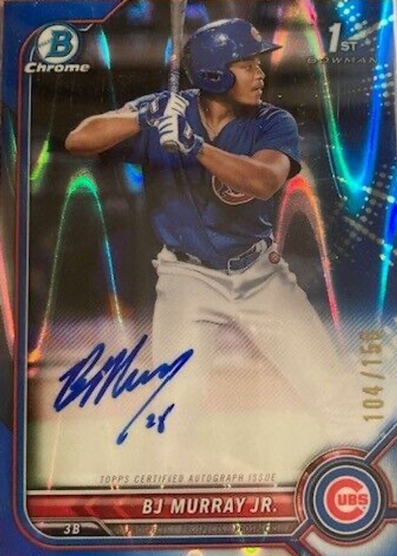 2022 Bowman Chrome 1st Blue RayWave Refractor Auto /150 BJ Murray Jr Cubs
