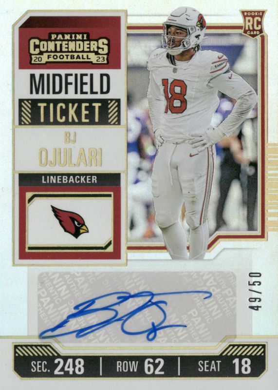 Best Prices Available For Sale of BJ Ojulari 2023 Contenders #145 Rookie Ticket Auto - Midfield Ticket /50