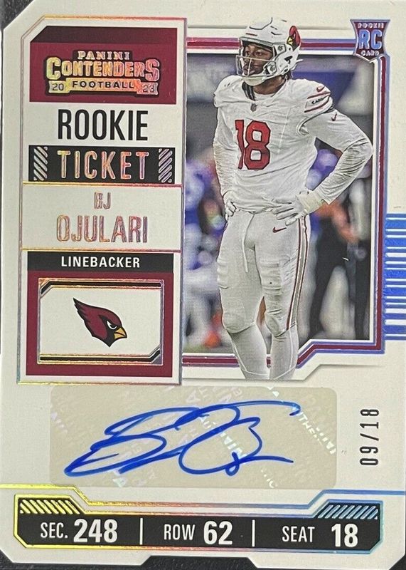 2023 Contenders BJ Ojulari Rookie Auto #145 Cardinals Ticket Stub /18 Jersey Num