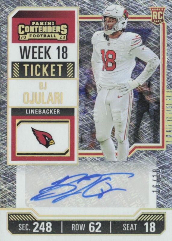 2023 Panini Contenders BJ Ojulari Week 18 Ticket Auto RC 18/18 1/1