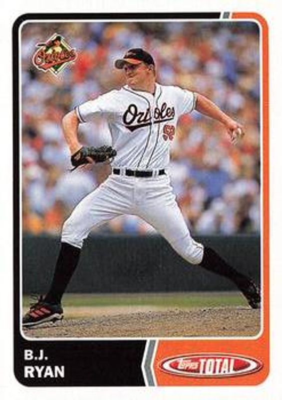 The BJ Ryan 2003 Topps Total #67 Base card is 1 of 2 BJ Ryan's card variations in the 2003 Topps Total set being tracked by Sports Card Investor, including Silver.