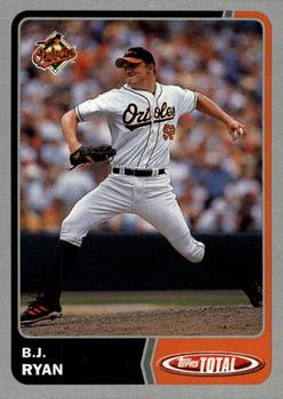 The BJ Ryan 2003 Topps Total #67 Silver card is 1 of 2 BJ Ryan's card variations in the 2003 Topps Total set being tracked by Sports Card Investor, including Base.