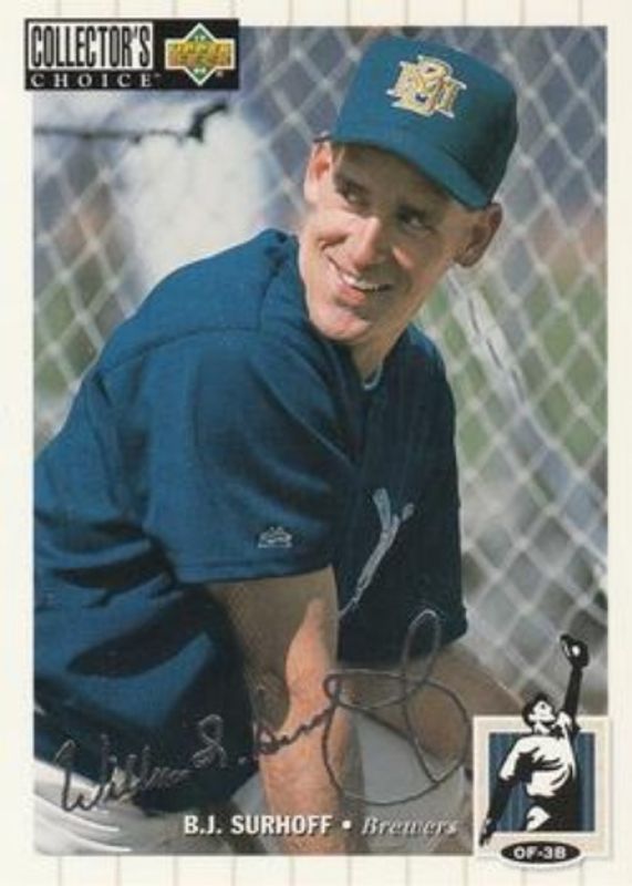 The BJ Surhoff 1994 Upper Deck Collector's Choice #469 Silver Signatures card is 1 of 3 BJ Surhoff's card variations in the 1994 Upper Deck Collector's Choice set being tracked by Sports Card Investor, including Base, and Gold Signatures.