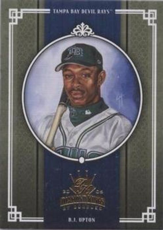 The BJ Upton 2005 Diamond Kings #225 Base card is 1 of 41 BJ Upton's card variations in the 2005 Diamond Kings set being tracked by Sports Card Investor, including Framed Red, Non Canvas, Framed Blue /100, Bronze /50, and Framed Green /50.