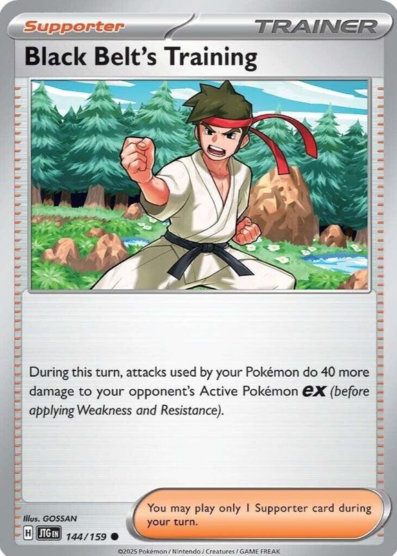 The Black Belt's Training 2025 Scarlet & Violet: Journey Together #144/159 Base card in Raw TCG (Near Mint) condition has not changed in price in the last 30 days and was last sold for $0.71 .