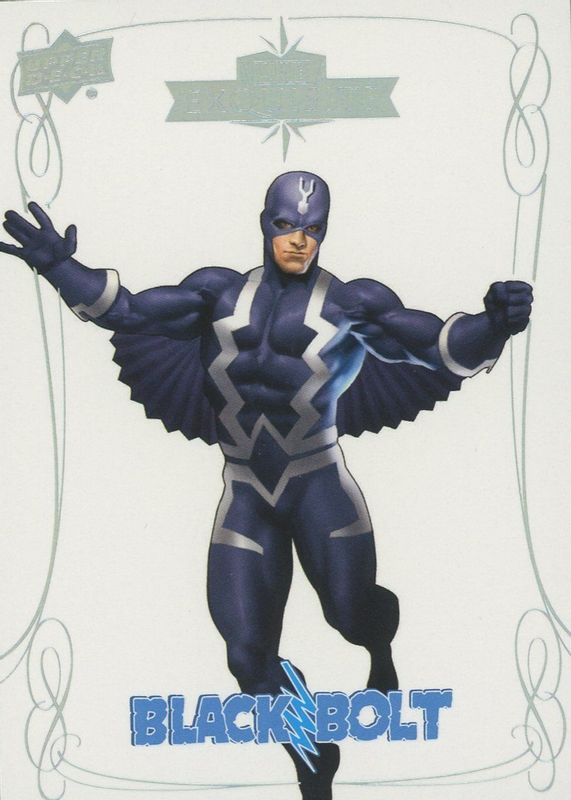 This card is 1 of 2 Black Bolt's card variations in the 2016 Upper Deck Marvel Gems set being tracked by Sports Card Investor, including Exquisite Nameplate /10.