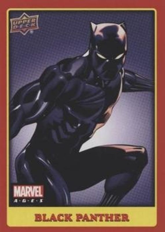 The Black Panther 2020 Upper Deck Marvel Ages #241 Base card is 1 of 11 Black Panther's card variations in the 2020 Upper Deck Marvel Ages set being tracked by Sports Card Investor, including High Series Foil Board, Decades 1960's, Flavorful, Fresnel, and Word Cloud.