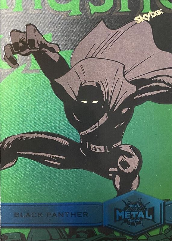 This card is 1 of 18 Black Panther's card variations in the 2021 Skybox Marvel Metal Universe Spider-Man set being tracked by Sports Card Investor, including Grandiose, Grandiose (High Series), Light FX Gold, Light FX Gold (High Series), and Light FX Yellow.