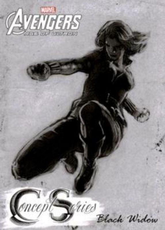 The Black Widow 2015 Upper Deck Avengers Age of Ultron #C-8 Concept Series card is 1 of 24 Black Widow's card variations in the 2015 Upper Deck Avengers Age of Ultron set being tracked by Sports Card Investor, including #57 Silver Foil, #26 Silver Foil, #12 Silver Foil, #57 Blue Foil /199, and #12 Blue Foil /199.