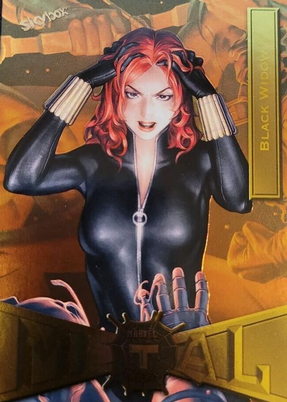2021 Spider-Man Marvel Metal Skybox Upper Deck 13 Black Widow Light FX Gold