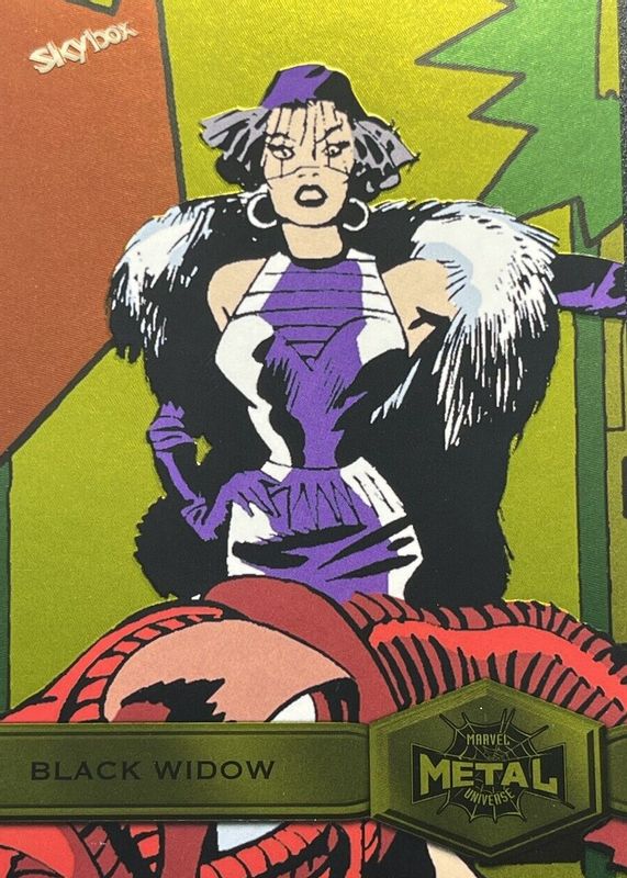 2021 Skybox Marvel Metal Universe Spider-Man Yellow Black Widow #113