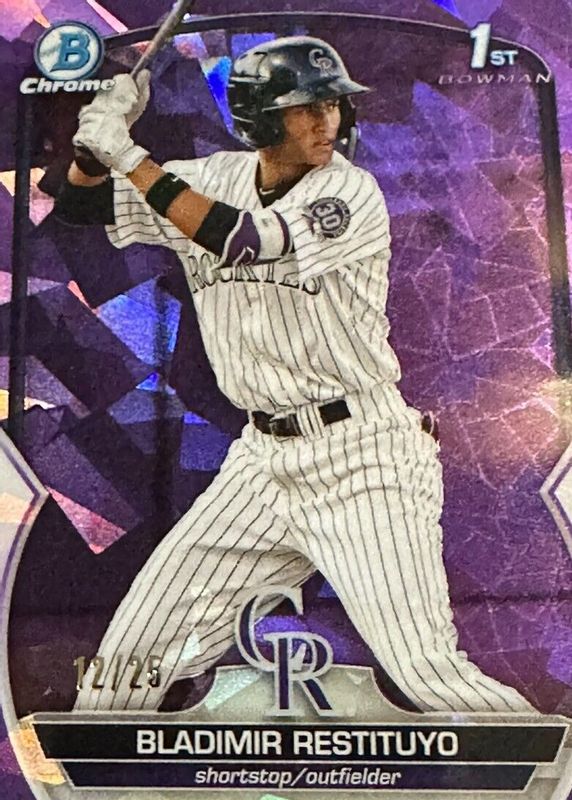2023 Bowman Chrome Sapphire 1st Bladimir Restituyo purple RC #25/25 ROCKIES!